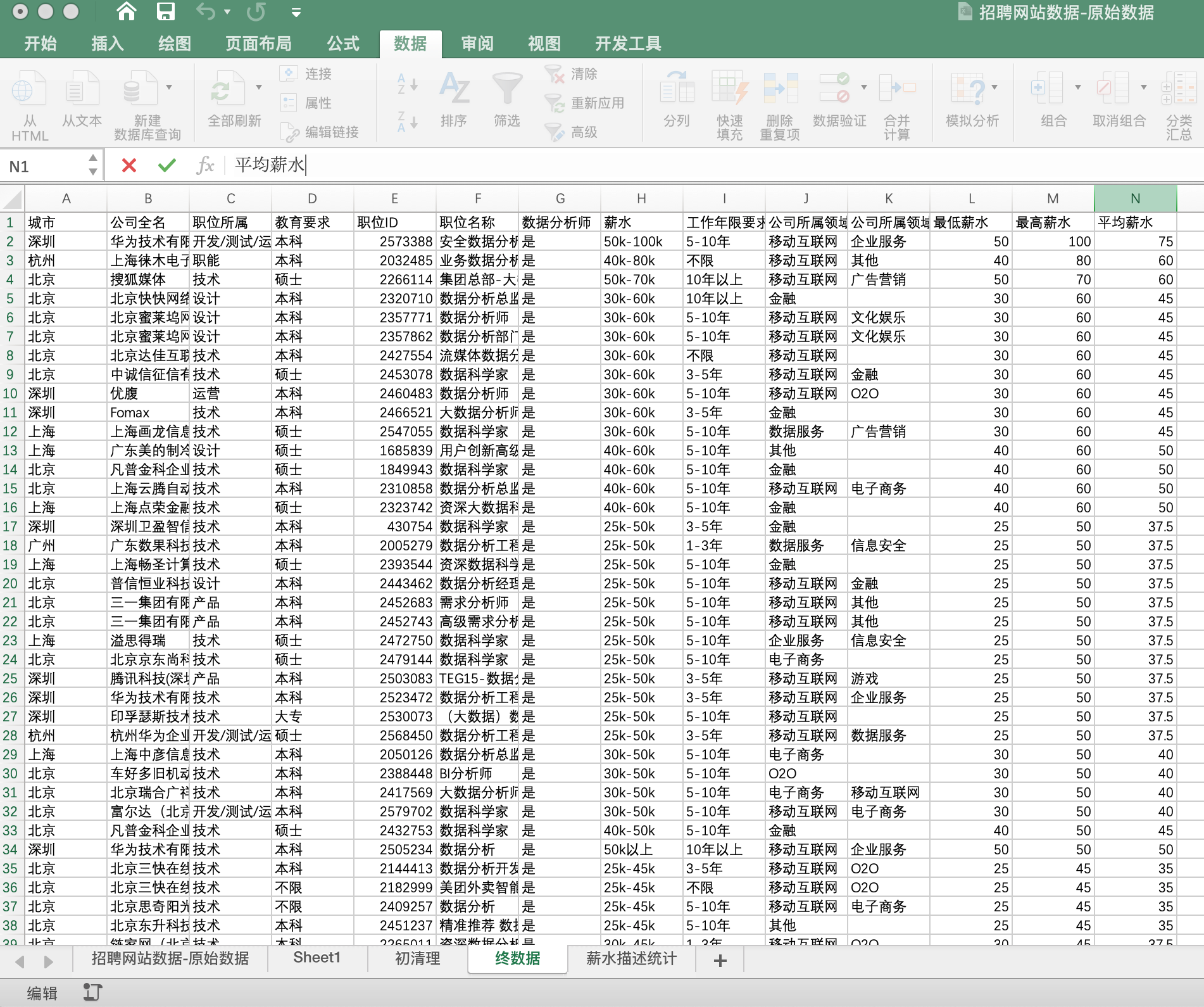 以某招聘网站的数据分析师招聘信息为样本数据,选取一个角度进行分析。熟悉使用Excel进行数据分析的基本步骤和常见操作