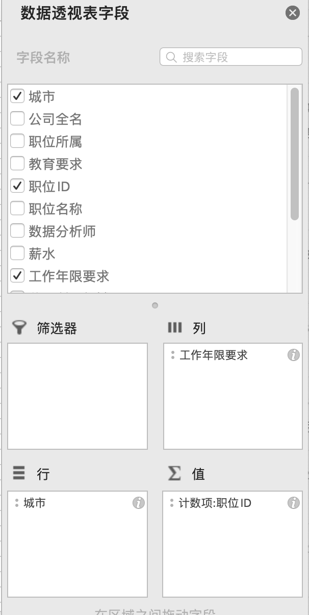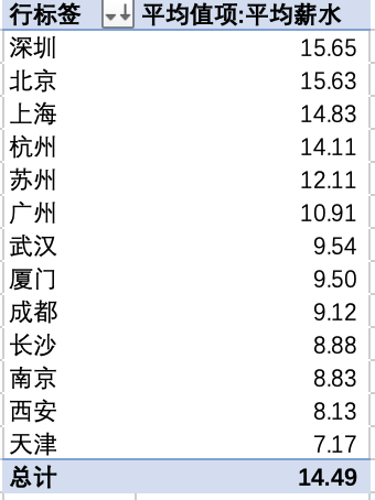 想要获取不同城市的平均薪资水平,可得以下数据透视表: